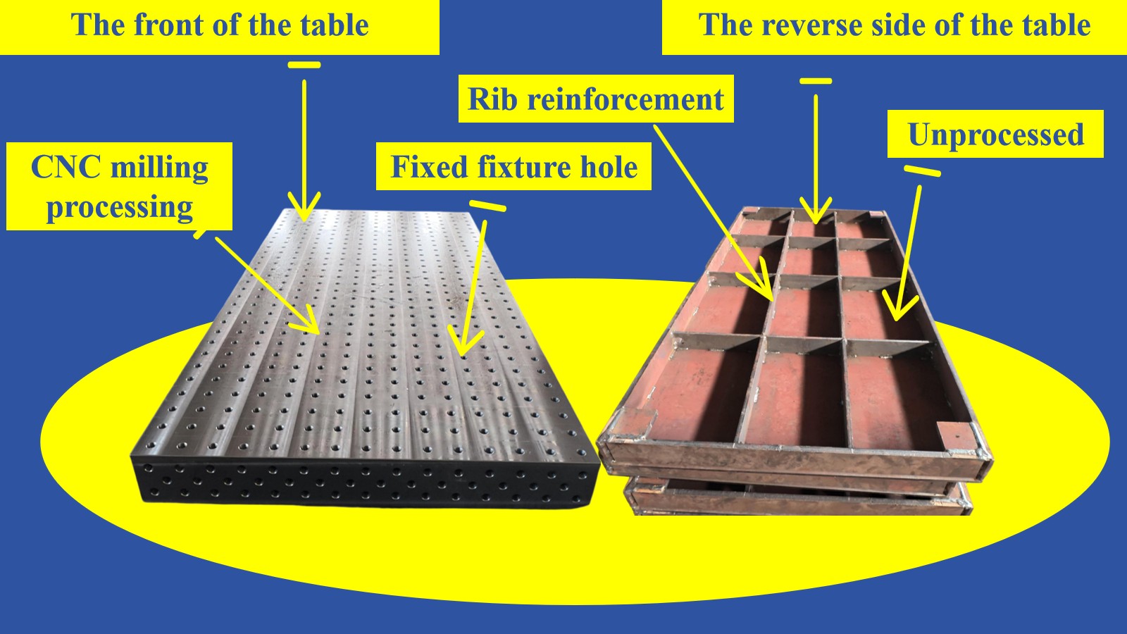 Multi-functional လိုက်လျောညီထွေ လိုက်လျောညီထွေရှိမှု- tabletop တွင် အမျိုးမျိုးသော tooling fixtures များကို အမြန်ပြုပြင်ရန်အတွက် ကြိုတင်တူးထားသော positioning hole နှင့် fixture mounting position များပါရှိပြီး manual arc welding၊ argon arc welding နှင့် gas shielded welding ကဲ့သို့သော လုပ်ငန်းစဉ်အမျိုးမျိုးနှင့် တွဲဖက်အသုံးပြုနိုင်ပါသည်။